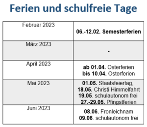 Donnerstag 4. Juni 2026 Freitag 5. Juni | Fronleichnam schulautonom frei |